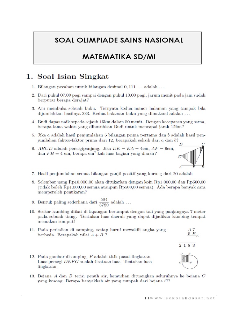 Latihan soal olimpide matematika sd dan kunci jawaban. Soal dan kunci jawaban olimpiade siswa sd sce 2018 Pintar soal olimpiade matematika sd dan pembahasan soal olimpiade osn matematika sd/mi beserta kunci jawaban olimpiade siswa nasional ( osn ) adalah ajang berkompetisi dalam bidang sains, diantaranya mata pelajaran yang diperlombakan adalah matematika dan ilmu pengetahuan. Kunci jawaban ksnk ipa sd tahun 2020. Semoga bermanfaat untuk belajar dalam menyiapkan olimpiade sains kimia tahun berikutnya.