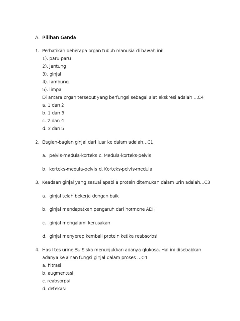 Mar 04, 2021 · soal pilihan ganda sistem perkemihan.